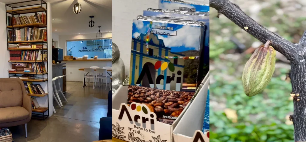 En sus estantes descansa un universo de productos, cada uno con su historia. Algo que llamó mi atención es que junto a las barras de chocolate de distintos porcentajes y orígenes, destaca un producto que merece una mención aparte: el vinagre de cacao San Mateo. Un ingrediente que yo no conocía, y me hizo sentir que todos deberíamos incorporar en nuestra cocina diaria, para llevar el orgullo por nuestro cacao mucho más allá del postre, y es que su sabor frutal envuelve el paladar de una forma dulce y delicada ¡como me habría gustado conocerlo antes!.