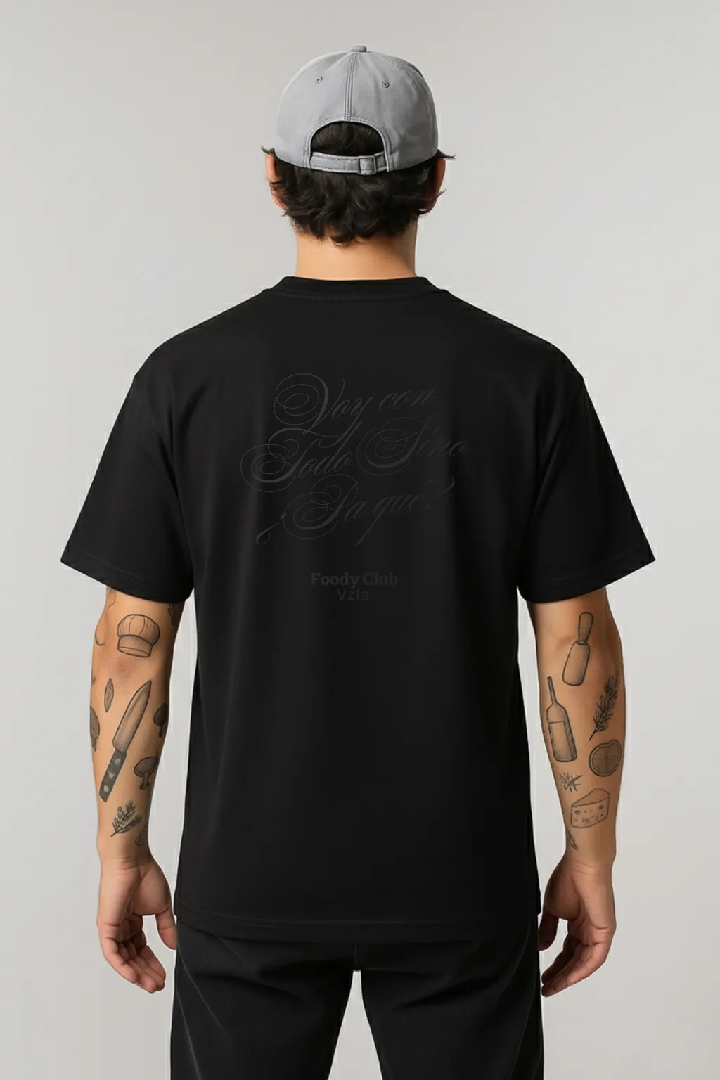 Negra con letras negras para dar una sensación de exclusividad y elegancia, Ve con todo, sino ¿Pa´ qué?